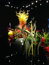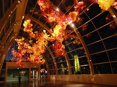 Ale když se daří, tak na všech frontách a to je paráda. Hned vedle je nádherné muzeum skla s výstavou CHIHULY - Garden and Glass a kulturu jsem dnes ještě neměla :). Otevřeno je až do 23.hodiny a paní mi radí, ať si projdu muzeum pomalu, že ve 22:30 osvětlí sklo v zahradě a že to si nemůžu nechat ujít. Poslechla jsem a dobře udělala. Byla to pastva pro oko i duši...