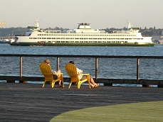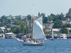 Autobus mě vypouští do centra Seattlu. Je něco po 4. hodině, co dál? Namířím si to k jezeru a opět mi padne do oka pohupující se stěžeň plachetnice. Dnes je na programu 2.5 hodinová plavba za západem slunce. Jsem tu právě včas, za 20 minut odplouvají. A já přeci nezůstanu na souši :)