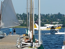 Dorazím k jezeru, plachetnice se krásně pohupují v marinách, hausboty na vlnkách a v rohu vidím letiště na vodě. Tak tady se rojí :). Jdu se mrknout zblízka. Vítá mě krásný billboard. Vcházím do malé haly a ptám se na možnosti vyhlídkových letů. Pani mi nabízí několik variant. Nejbližší dnešní mi dostupný let je až kolem poledne a to už mám v plánu být úplně jinde. Tak se domlouváme na prvním letu v neděli, platím letenku a tím mám program na poslední den v Seattlu.