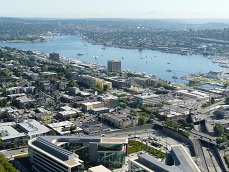 Ráno se probouzím v chicagském času, takže můj spolunocležník ještě chrupe. Mám v plánu stihnout první ranní prohlídku Space Needle, ať využiju obě návštěvy ve 24 hodinách. Procházka ranním městem je parádní. Počasí přeje, potkávám pár pejskařů, pár lidí sedících v předzahrádkách kaváren a pár "nešťastníků", co nemají volno jak já, ale musí do práce. Přicházím k Space Needle a nikde nikdo. Na dveřích čtu, že mají otevřeno až od 9.hodiny. Co nadělám. Mrknu do mapy a vidím, že další jezero Lake Union je co by kamenem dohodil. Tak vyrážím. Po cestě míjím zahradu se skleněnými exponáty ze včerejška. A vidím letět pár hydroplánů. Příjemné překvapení mě ale teprve čeká...