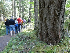 Dnes jedu na velký výlet. V 7 hodin mě vyzvedává malý bus u hostelu, čeká mě představení se osazenstvu a vyrážíme, směr Mt.Rainier park. Konečně uvidím tu krásnou horu nejen z letadla. Jsme opravdu mezinárodní sestava ve 24 lidech - USA, Austrálie, Čína, Japonsko, Indie, Hawai a Česká Republika. Náš průvodce a řidič v jednom se jmenuje Mark. Je to největší eso mezi průvodci, takže super. Společně s nastartováním si bere mikrofon a tím začíná šnůra výkladů, otázek z Trivia a odpovědí na naše všetečné otázky. Není otázka, na kterou by neznal odpověď. Říká, ať si jej vyzkoušíme. A je to tak. Sem tam zastavíme u krásného vodopádu nebo výhledu, až jsme u cíle.