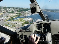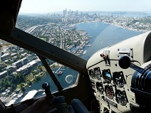 Startujeme, plynule se pohybujeme na vzletovou "dráhu". Kajaky a čluny chvíli počkají a kačky raději trochu popoletí. Pozoruju krásnou brázdu, kterou za sebou zanecháváme. A už jsem ve vzduchu. Ani nevnímám, co to ten průvodce do sluchátek mluví. Nevím, kam se dívat dřív. Výhled nádherný, a to jak z okénka, tak na palubovku nablýskaného de Havillandu. Vrtule se krásně točí, pilot si jen tak dvěmi prsty přidržuje knipl, ani to neháže. Proti naší Anduly je to slast. Prolétáme nad jezery, mrkneme se co dělají majitelé houseboatů, jak je Seattle krásně zelený a už se před námi tyčí betonový les centra. Prolétáme kousek od Space Needle, pozorujme obrovské výletní lodě v přístavu i plachtící nadšence. No a taky jsem zaslechla něco o domě Billa Gatese. Musím prozkoumat tracklog :). A už otáčíme zpět k Lake Union, vodní dráha je volná a pilot měkce dosedá na vodní hladinu. Jako do peřin :).